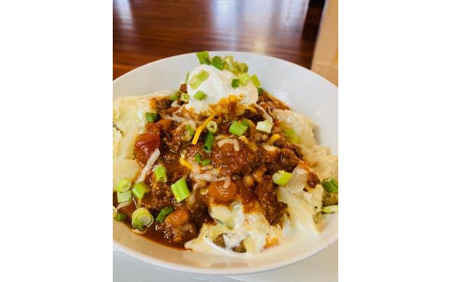 Celebrate Hump Day with one of our two King Cropp Specials. Pictured is our Jumbo Loaded Baked Potato-topped with Chef's Homemade Angus Beef Chili-White Cheese Sauce-Sour Cream-Green Onions-One Side $13 (GF) Not pictured-Jumbo Baked Potato-Topped with Steamed Broccoli-Homemade White Cheese Sauce-One Side $13 (GF & Vegetarian)
