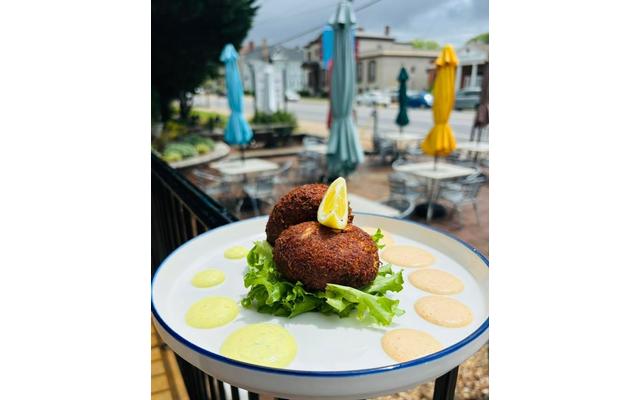 Don't let the clouds keep you from tonight's special, May 13th. Jumbo Crab Cakes Lemon Dill Aioli-Cajun Tartar-2 Sides $30 (GF/DF/AG)