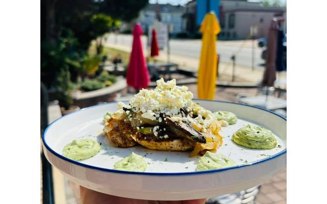 Friday, April 24th Special Smothered Chicken Grilled Chicken Breast-Caramelized Onion- Grilled Portobello Mushrooms-Feta Cheese-Basil Pesto Aioli- 2 Sides $23 (GF)