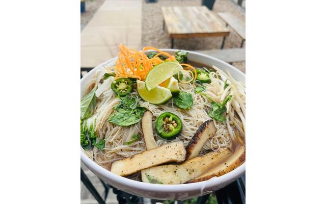 Happy Friday, October 6th. This one is "Pho the Vegans" Pho The Vegans Grilled King Oyster Mushrooms-Baby Bok Choy-Onion-King Cropp Jalapeño's-King Cropp Habanada Peppers-Mint-Cilantro-Basil-Lime-Bean Sprouts-Vermicelli Rice Noodles-Savory Mushroom Broth-Hoisin-Sriracha $20 (GF/Vegan/AG) (Dine In Only)