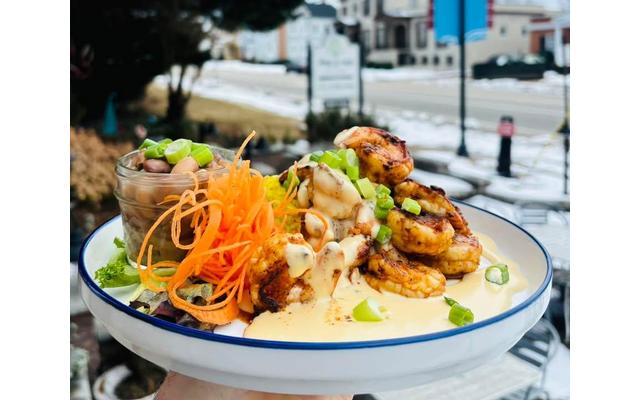 Chipotle Grilled Shrimp-Gold Rice-Jalapeño Cheese Sauce-Green Onions-Olla Beans $28