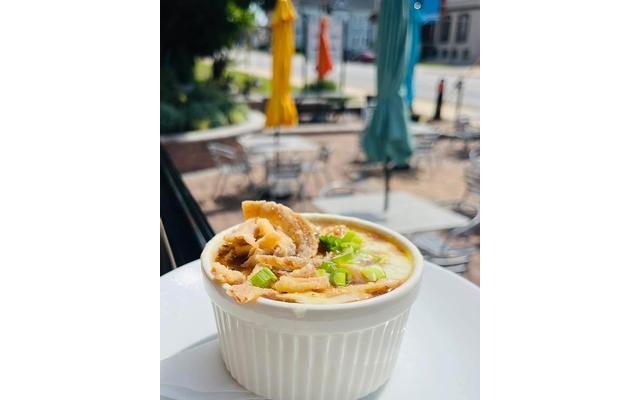Who needs a new special? You do! Join us May 23rd. Side of the Day Swiss Onion Soup Sweet Onion-Savory Vegetable Broth-Swiss Cheese-Fried Onions-Green Onions (GF/Veggie) Entree Chicken Tikka Marinated Grilled Chicken Breast-Spiced Tomato Sauce-Basmati Rice-Poached Sweet Peas $23 (GF/DF/AG)